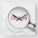 Red "Invest" text under a magnifying glass on a white faded paint textured background.