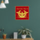 Invictus - invincible, unconquerable. Show your own unconquerable spirit on your wall with this bold and dramatic poster. This is a version of the Invictus design featuring dark gold outlines rather than the ancient gold set directly against the red background - it makes for a solid, engraved look.
