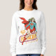 Check out this retro graphic of Supergirl flying, featuring the words: "Invincible Supergirl - More Than Looks To This Supergirl"!