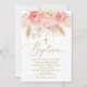 Invitación Baptism Floral pink Boho Pampas Girl In Invitation
