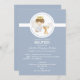 Celebra el Bautizo de tu hijo con esta invitación que presenta a un lindo ángel niño sobre un fondo azul claro. Es perfecta para ceremonias de Bautizo católicas y religiosas.