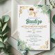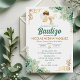 Invita a amigos y familiares al bautizo de tu niño con esta Invitación de Bautizo Religiosa que presenta un angelito de acuarela y hojas verdes. Personalizable en español.