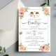 Celebrate the Baptism of your twins with this religious invitation. Featuring two little angels—a boy and a girl— and cute pink flowers.