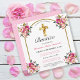 Celebre el bautism de su hija con friends and family invitándolos con esta elegante postcard de invitación de bautism de imitación floral dorada y rosa. This diseño presents a hermosa cruz de oro con un marco floral on un fondo blanco simple. Personalize el text y la before you. Other futures and styles available. Contáctanos con tus requitudes speciales y we'll be delighted with ayudarte.