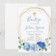 Blue Floral Baptism invite in Spanish. Invitación de Bautizo para niño