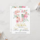 Esta es una invitación de bautizo sofisticada, elegante y minimalista. Con diseño flores en tonos rosas y dorados.