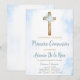 Invitación de primera comunión floral azul invitation