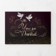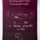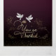 con textura de colour cereza degradado y palomas blancas con dos anillos purpurina en la parte inferior y palomas doradas en la parte interior acompañadas con la invitación de los padres a la boda de la hija.