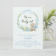 We can barley wait baby shower invitation, customise. blue and green boy bear theme invitation.