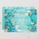 Turquoise silk bow with a turquoise rose with gold leaves on a light background. Fashionable colour. Turquoise roses. White gold. Blue tiffany.