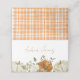 Welcome a new little one with this charming fall-inspired baby shower place card! Featuring elegant white pumpkins, rust-colored florals, and delicate greenery arranged around a cozy orange gingham border, this design perfectly captures the warmth of an fall themed celebration.
