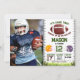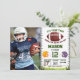 Ready for a football birthday party? This design features hand-painted watercolor items such as a football helmet, and football ball, together with the typography "First Year Down", and "Little Rockie". All text is editable on this birthday invite and budget-friendly postcards are available too! The design is suitable for boys and is fully customisable for a 1st birthday, 2nd birthday, and older kids. Find matching items in my shop.