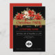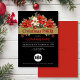 Annual Corporate Christmas Party Invitation. Red and white Poinsettia decorations on a golden ribbon with Christmas Party on a black background.