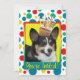 Invite your guests with this whimsical Corgi Dog Greeting Card. With a cupcake balanced on it's head, this design is sure to bring a smile and giggles! BTW, This design has several versions, with different background colours. There is also a Happy Birthday version.