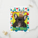 Invite your guests with this whimsical French Bulldog Dog Greeting Card. With a cupcake balanced on it's head, this design is sure to bring a smile and giggles! BTW, This design has several versions, with different background colours. There is also a Happy Birthday version.