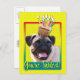 Invite your guests with this whimsical Pug Dog Greeting Card. With a cupcake balanced on it's head, this design is sure to bring a smile and giggles! BTW, This design has several versions, with different background colours. There is also a Happy Birthday version.