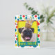 Invite your guests with this whimsical Pug Dog Greeting Card. With a cupcake balanced on it's head, this design is sure to bring a smile and giggles! BTW, This design has several versions, with different background colours. There is also a Happy Birthday version.