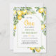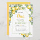 Lemon citrus 1st birthday invitation, drawn in soft pastel colours in a watercolor style.