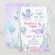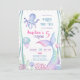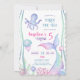 A nautical themed birthday invitation featuring illustrations of the seabed, a cute octopus, an adorable jellyfish, and a magical mermaid tail.