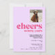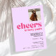 A simple, modern style drawing inspiration from cool retro lettering and mid-century minimalism. Pastel purple background with bright pink lettering, "cheers to forty years". Personalise it with a photo of the guest of honour.