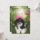 Invitation Shih Tzu Dog and Pink Flowers