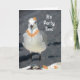 Invitation to a party with a Seagull dressed in orange flowers around her neck and on her head so that she looks like she is ready to party.