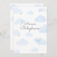A nice invitation for a baby shower, with light blue clouds and golden hairs. Adjust the texts yourself.