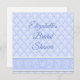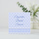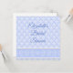 Original damask is actually a type of fabric which uses various weaving techniques and various threads to create alternating sheens resulting in a tone-on-tone design. In original damask, the pattern was actually woven into the fabric, making the fabric reversible. A more modern adaptation would be the fabrics created on Jacquard looms. These machined damasks were less expensive and succeeded in bringing this more affordable damask to the middle class. This design is a salute to that thousand-year-old art of damask weaving. The white flourish is a crisp contrast to the wedgwood-esque blue backdrop. The back is a simple white and blank -- needing only the details of your event.