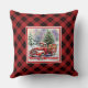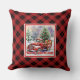 Inviting red truck winter scene rustic holiday cushion