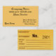 Yellow merchandise invoice ticket on back of your business card. Customise with your company information.