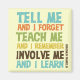 Benjamin Franklin quote reads "Tell me and I forget. Teach me and I remember. Involve me and I learn."! This awesome inspirational message is available in multicolor text on T-shirts, hoodies, tote bags, magnets, mugs, key chains, buttons, water bottles, and many other items great for anyone who values education!