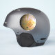 Io is the yellow volcanic moon of Jupiter. The yellow is sulphur, and the black and orange splotches are volcanos.