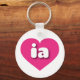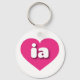 This key chain features a vibrant hot pink heart containing the bold, white, rounded lower case letters ia, a playful abbreviation for the state of Iowa, the hawk eye state.