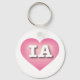 This key chain features a calm, cool, and collected pink heart with a white washed centre containing the bold, white, upper case letters IA, the official abbreviation for Iowa, the hawk eye state.