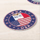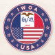 Badge of Iowa with flag of Iowa and flag of USA colours, rounded shape.