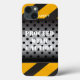 This black and yellow striped grunge pattern Proceed with Caution Case-Mate Barely There iPad Air Case has a FAUX silver grey grill on the centre with template text for you to add your company name, monogram, initials, name or other text. It makes a statement that tells people to keep away from your device! Get lots of compliments from friends, family, and customers with this unique custom case. If you need assistance, email niteowlstudio@gmail.com.