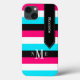 This personalised black, white, turquoise blue and fuchsia pink Case-Mate Barely There iPad mini Retina display case has a wide bold striped background pattern and a black banner ribbon with white stitching that you can add your name, initials, monogram or other text to. This modern and trendy new case makes a chic statement for the hip young fashionista! If you need assistance, email niteowlstudio@gmail.com.