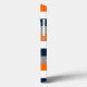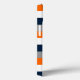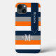 This nautical inspired personalised navy blue, orange, white and grey Case-Mate Barely There iPad mini Retina display case has a wide bold striped background pattern and a banner ribbon with white stitching that you can add your name, initials, monogram or other text to. This modern and trendy new case makes a chic statement for the hip young fashionista! If you need assistance, email niteowlstudio@gmail.com.