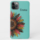 iPhone 11 Pro Max Case with pretty Fall coloured sunflower on a teal green background. The name on the case can be changed. Thanks to Creative Fabrica for some of the elements in the design.