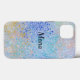 iPhone tough 13 case in colourful splatter dots. The name on the case can be changed.
