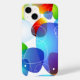 iPhone 14 case is shown in a colourful abstract print.
