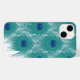 iPhone 14 case is shown with a lovely peacock feathers print.