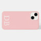 iPhone 14 case is shown in the colour of vintage pink with initials.