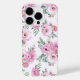 iPhone 14 pro case is shown in a lovely pink roses print.
