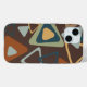 A fun iPhone 15 Case with a groovy mid century modern design, with overlapping triangles. In warm retro seventies colours.