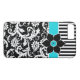 This personalised black and white Case-Mate custom iPhone 7 case has a floral damask and striped background pattern with an aqua blue and white band and flower with circle to add your initial, monogram or other text to. This modern and trendy new case makes a chic statement for the hip young fashionista! If you need assistance, email niteowlstudio@gmail.com.