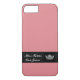 iPhone 7 case shown in pink with a black accent strip with a Miss America pageant style crown and custom name and title. Customise this item and change the text to what you need.