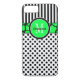 This personalised black and white Case-Mate custom iPhone 7 case has a fun polka dot, striped background pattern with a lime green and black giraffe print band and circle to add your name, initials, monogram or other text to. This modern and trendy new case makes a chic statement for the hip young fashionista! If you need assistance, email niteowlstudio@gmail.com.
