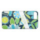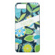 This personalised Case-Mate custom iPhone 7 case has a navy blue background with a whimsical pattern of lime green, turquoise or aqua blue and yellow flowers with an angled white band to add your name, initial, monogram or other text to. This modern and trendy new case makes a chic statement for the hip young fashionista! If you need assistance, email niteowlstudio@gmail.com.