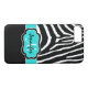 This personalised black and white Case-Mate custom iPhone 7 case has a fun zebra print striped background pattern with an aqua blue and black band to add your name, initials, monogram or other text to. This modern and trendy new case makes a chic statement for the hip young fashionista! If you need assistance, email niteowlstudio@gmail.com.